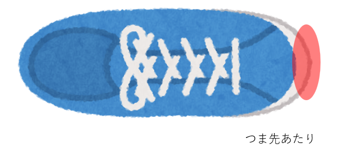 自分は足を上げているつもりでも、着地の際につま先が床に擦れてしまう事が何度もある人や、ピッタリすぎる人は隙間がないので止まった時に圧力の逃げ場がなくつま先部分に負荷がかかってしまう事が想像できます。